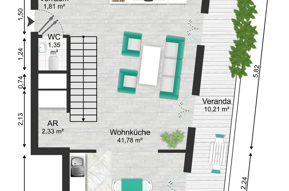 • Zwei große Außenflächen mit insgesamt über 18 m²