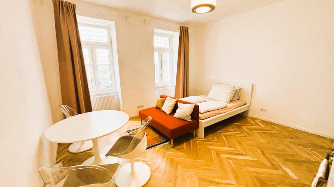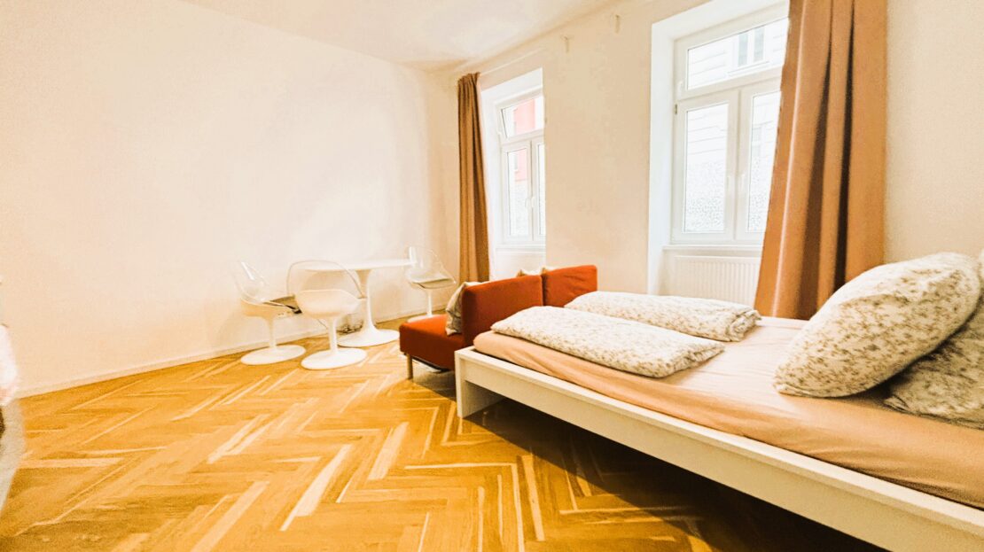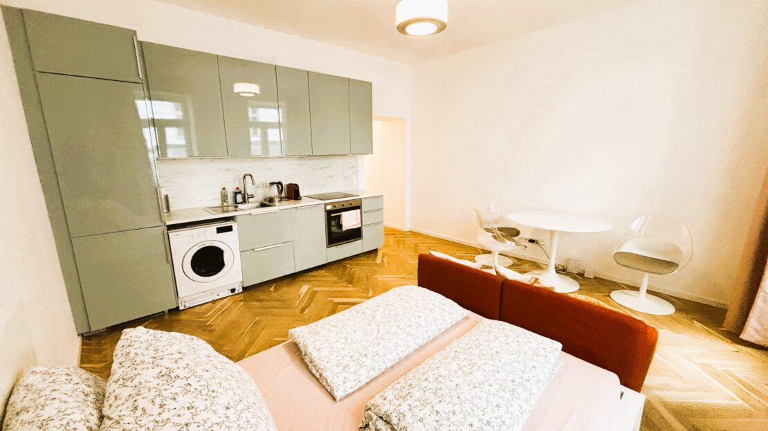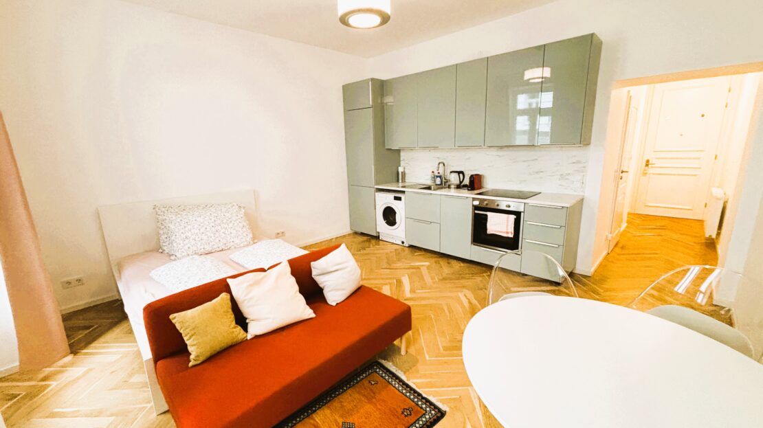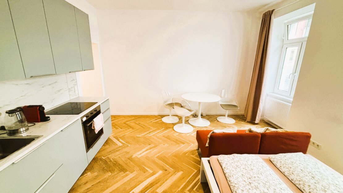 Das attraktive Altbauhaus wurde 2025 generalsaniert und die Wohnungen vollständig erneuert. Die Immobilie besticht durch eine erstklassige Infrastruktur und hervorragende Verkehrsanbindung. Die kompakte Wohnfläche von ca. 35 m² verteilt sich auf zwei Zimmer sowie ein Badezimmer mit WC. Dank der sinnvollen Raumaufteilung wirkt die Wohnung großzügig, und alle Räumlichkeiten sind zentral begehbar und separat zugänglich, geeignet für bis zu 4 Personen. Das Wohnzimmer ist mit einer neuen Einbauküche inklusive Geräte ausgestattet (Waschmaschine, Geschirrspüler, Kühlschrank mit Tiefkühlfach).